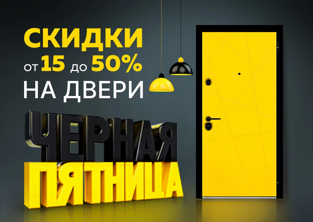 Объявляем ЧЕРНУЮ ПЯТНИЦУ! Только с 24 по 28 ноября скидки от 15% до 50% на входные двери под заказ и выставочные образцы.